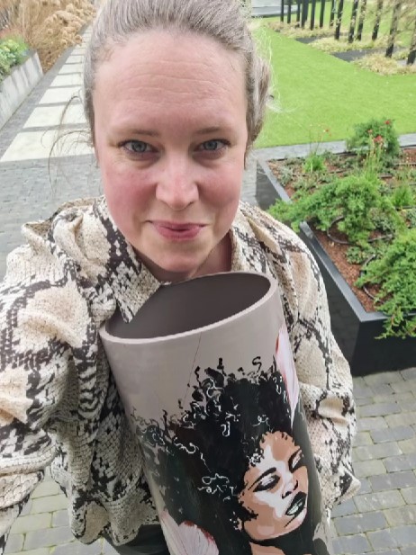 Handbeschilderde portretvaas vrouw
